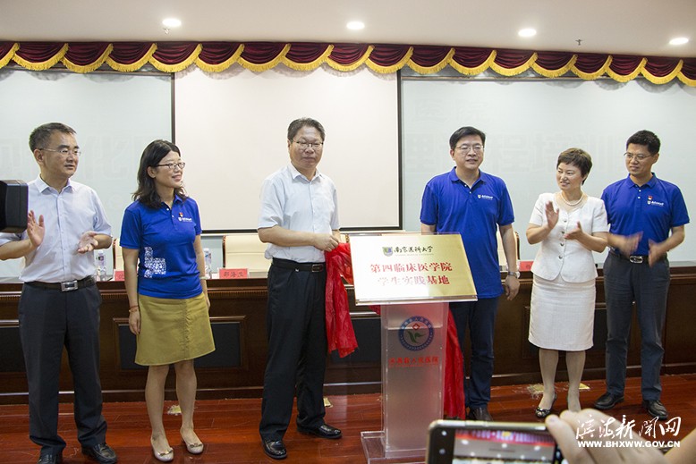 南京医科大学研究生院党委书记孙厚纯、南京医科大学第四临床医学院党委书记院长邵海亚、我县副县长程熙、县卫健委主任杨光等领导出席活动并分别致辞,邵海亚院长与杨光主任共同为“实践基地”揭牌。