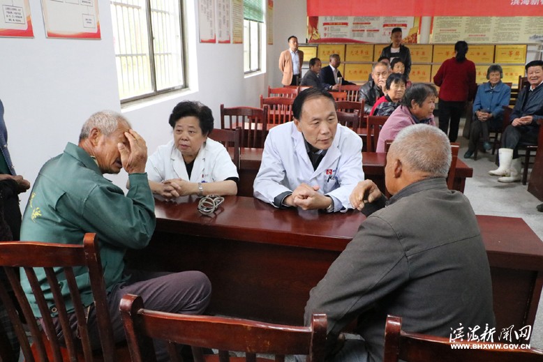 在义诊现场,薛新潮、何开玲主任认真地为老人们诊脉搏、查病情,询问老人们的生活起居及健康情况,为老人讲解疾病的预防及诊疗知识;两位护士为老人们测量血压、血糖。现场洋溢着温馨和谐的气氛。