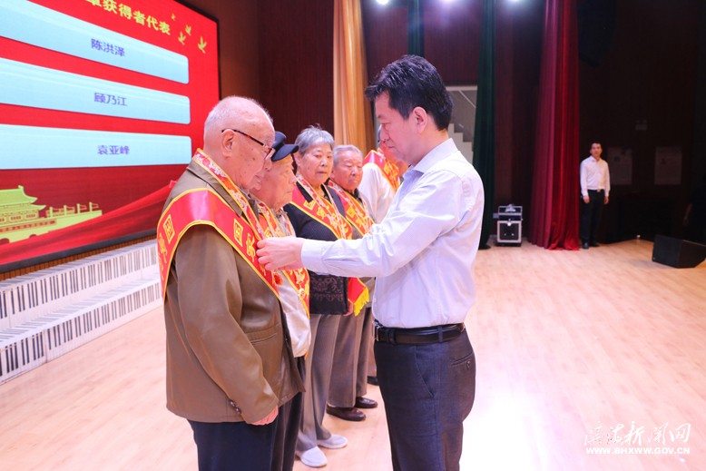 市委组织部副部长、市老干部局局长顾汝华为离休干部颁发国家纪念章
