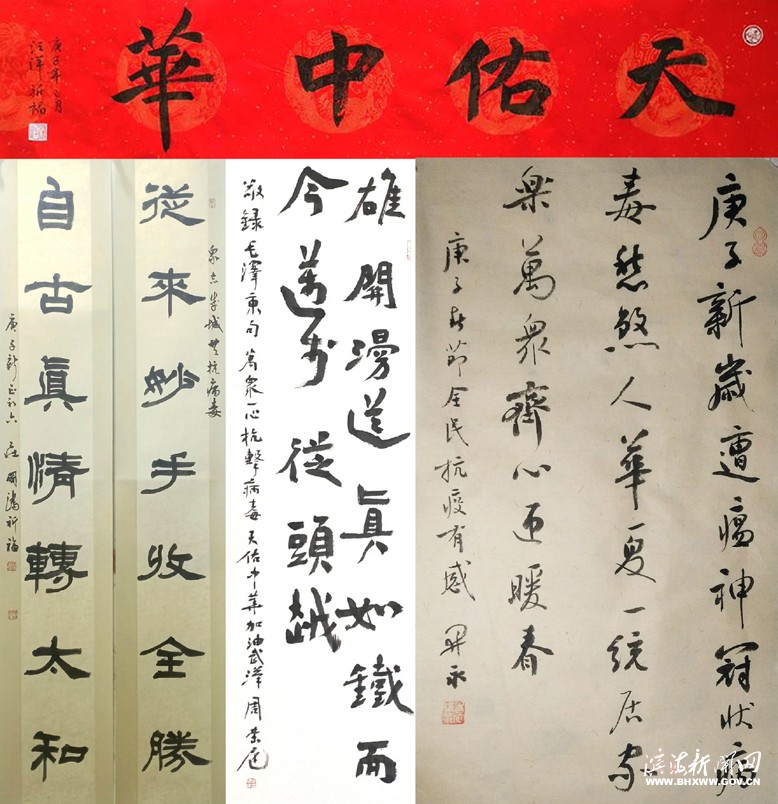 书画界政协委员体现艺术担当,创作出一批以“万众一心,抗击疫情”为主题的书画作品,歌颂、致敬和鼓舞奋战在防控一线的广大抗疫英雄们,以笔墨的形式为抗击疫情贡献书画界的力量。