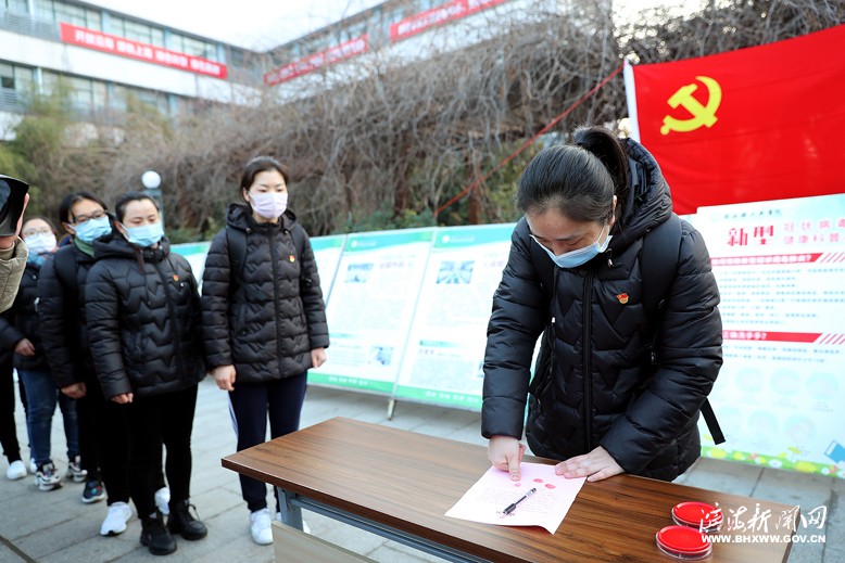 县医院赴鄂抗疫支援人员由孟海、蔡勇、管天文3名副主任医师、陆嫔嫔、李文飞、金雪、成丽华、陈宁、徐艳云、王菲菲7名优秀护理骨干组成。10名队员在请战书上表示,为人民群众的健康勇往无前,不惜一切,并按下自己的手印。他们中有7名共产党员,3名入党积极分子。他们成立临时党支部,由孟海担任党支部书记,陆嫔嫔、李文飞担任支部成员。队员们意志品质过硬,有责任担当,专业业务能力强,身体素质良好,能够承担高强度医疗救治任务。根据要求,在很短时间内,他们全部做好工作交接、防护物资准备、行李安排、各项工作。