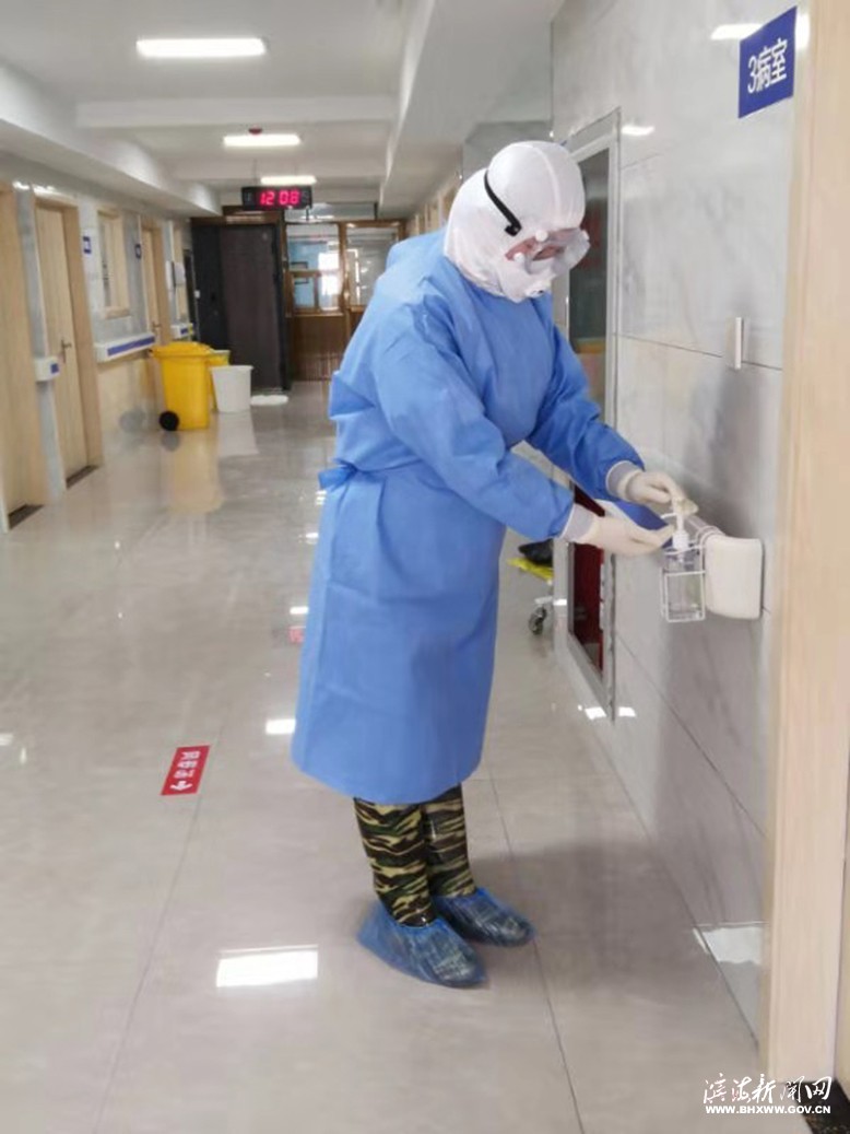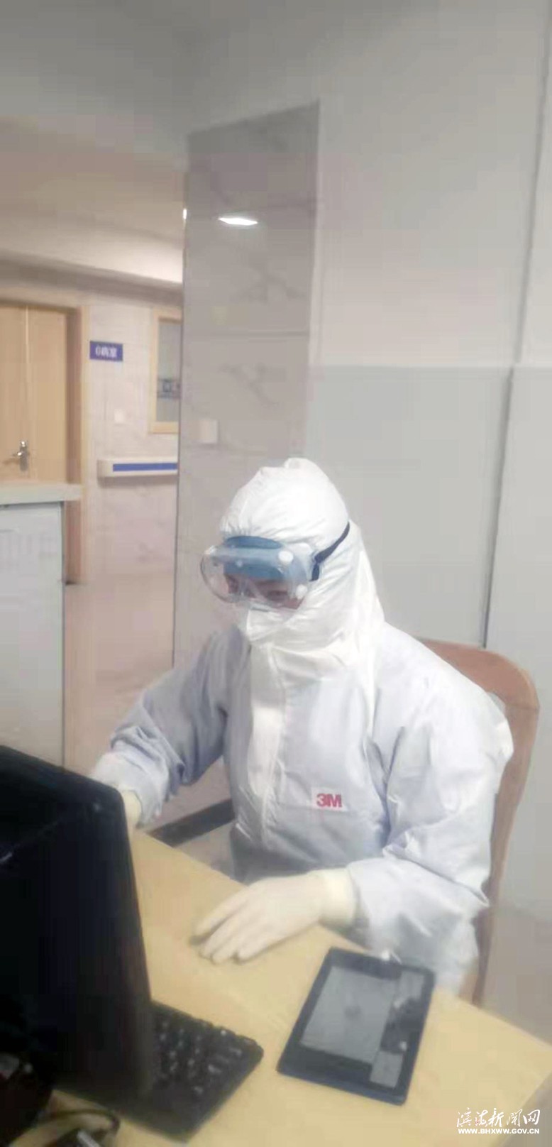 农历正月初三,我们作为院隔离病区第一梯队入驻。期间,我们4小时轮流排班,负责病区环境的消杀工作,做好患者的治疗护理,照料患者的饮食起居等,协助领导和医生们做好工作。比起往日的工作,最难熬的就是这身行头给身体带来的不适感。形象点形容:捏着鼻子,捂着嘴巴,用绳子勒着脑袋,眼睛蒙着(雾气),再被两个人拽着耳朵,全身包裹垃圾袋,再进入汗蒸房内的感受。多少次想把这身行头挣脱。好几次夜班,我难过地坐那流着眼泪。最后,因为职业的使命,和那一篇篇来自武汉一线的报道,还有家人的鼓励,让我坚持下来。想想患者,我们的工作困难比起他们身体和心理所受的折磨不算什么。一位确诊患者哭着跟我说:患难见真情,病中懂人心。