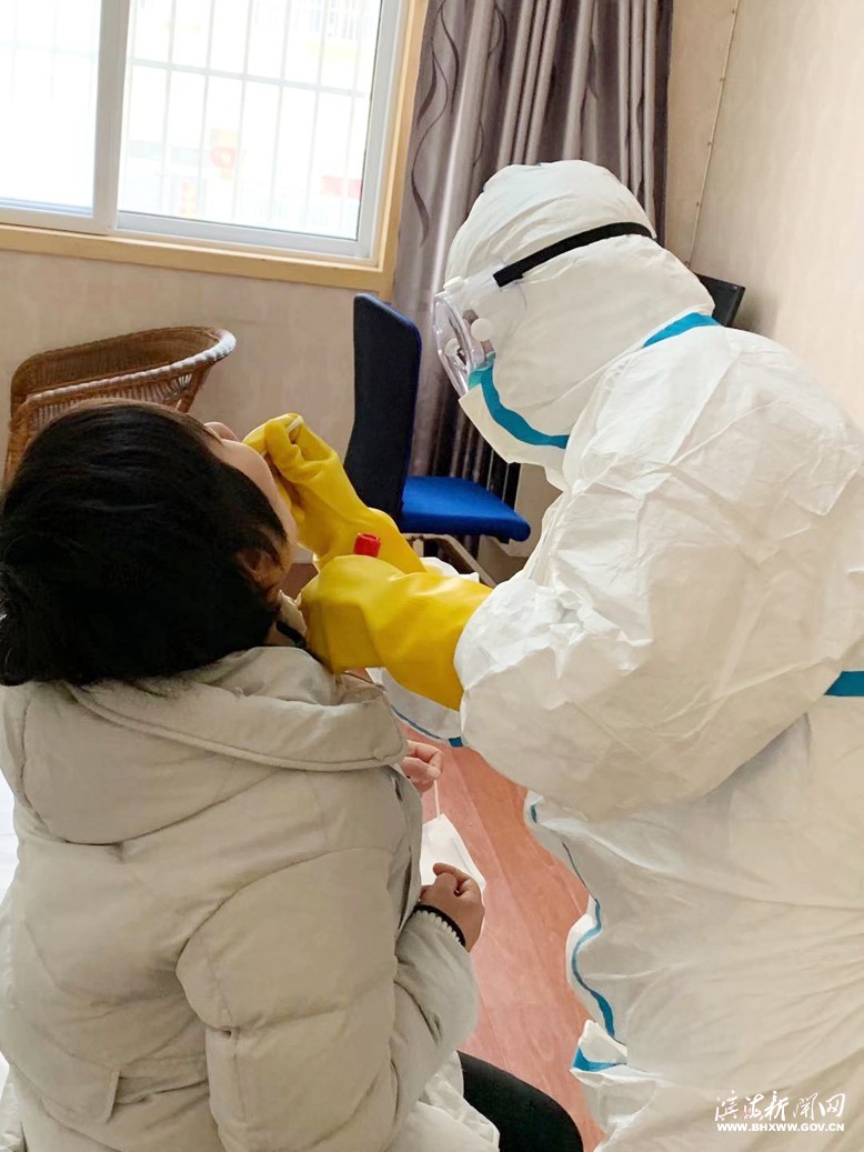 有一位新冠病毒感染的肺炎患者的密切接触者是五汛镇一名80多岁的老人,腿脚不便,居家隔离。史明明等采样组同志到达五汛时已是晚上九点多,为了不打扰当地群众的休息,尽量减少人员接触,他们只能借着车的灯光,在寒风刺骨的农村小路边穿脱防护服。第二天,在得知老人核酸检测结果为阴性时,她和同事都松了一口气。
