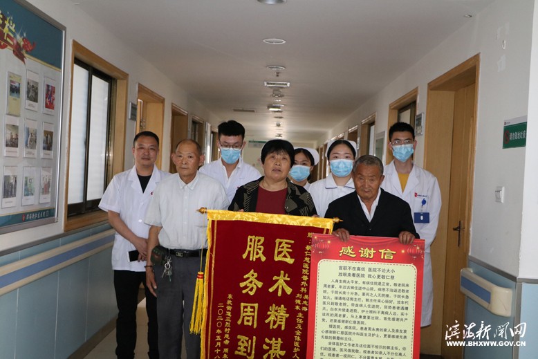 5月26日下午,滨海新仁慈医院ICU和普外科两个科室收到来自同一位患者及其家属送来的锦旗。