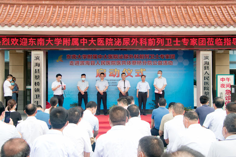 东南大学附属中大医院副院长陈明,县政府办公室副主任李健,县医院党委书记、院长吴限 ,东南大学附属中大医院泌尿外科“前列卫士”专家团10余名专家,以及蔡桥分院50余名医务人员参加仪式。