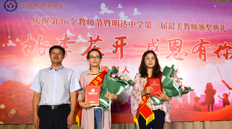 教师代表倪小菲、周慧先后发言,他们对明达中学的未来充满信心,表示要以“四有”好教师的标准,全力以赴履行好教书育人的神圣职责,勤勉工作,关爱每个学生,为滨海教育事业的发展建功立业。