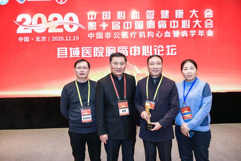 近日在北京国家会议中心召开的中国心血管健康大会、第十届中国胸痛中心大会上,专家从通过认证的全国1672家胸痛中心中,评选出19家胸痛中心授予“开拓先锋奖”。县人民医院胸痛中心位列其中,成为近年来在国家胸痛中心大会上唯一两次获奖的县级医院。中华医学会国家心血管健康联盟、国家胸痛中心联盟副主席霍勇教授为该院参会代表、副院长刘爱军,副主任张永林,护士长刘冬兰颁发奖杯。