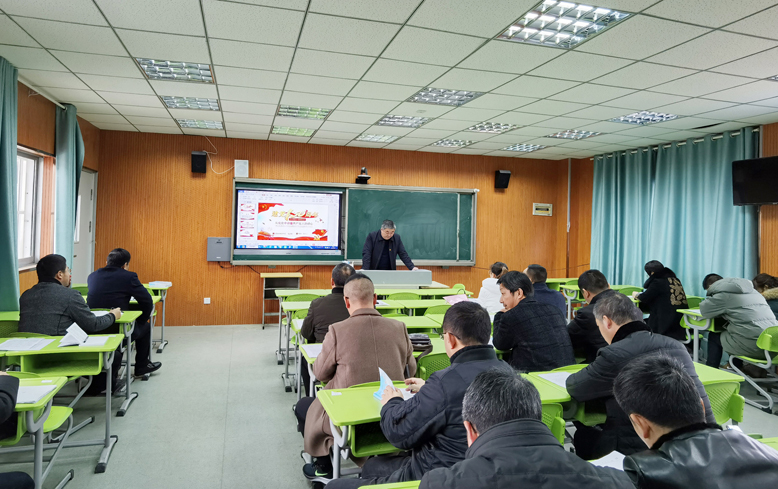 日前,明达中学党总支组织党员上党课,开展党性教育。