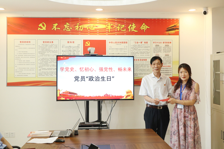 为深化党史学习教育,引导党员干部深刻领悟红色初心,强化党员的宗旨意识、身份意识和责任意识,6月24日下午,该院党支部组织开展了“学党史 忆初心 强党性 畅未来”党员政治生日活动,为5名党员同志过“政治生日”。