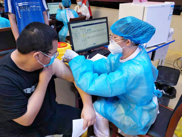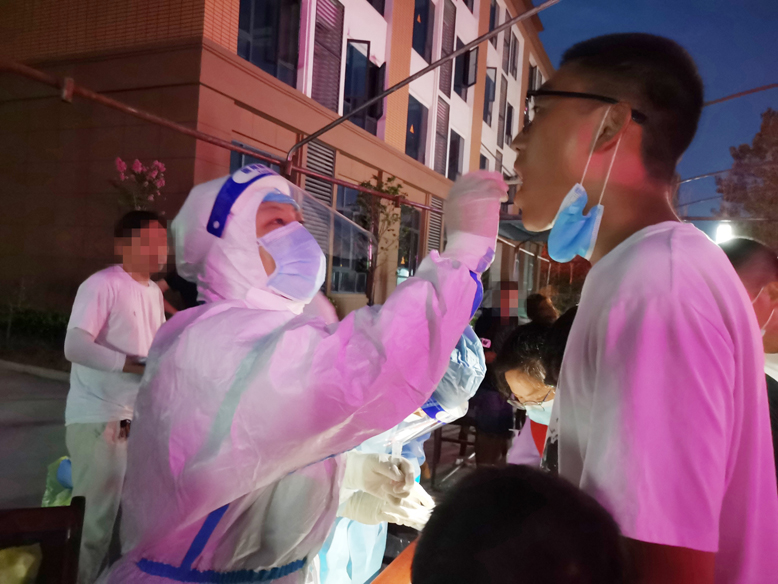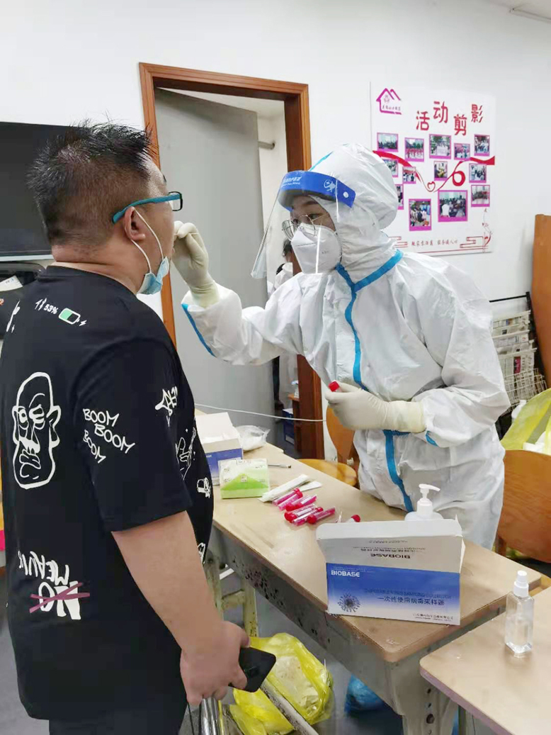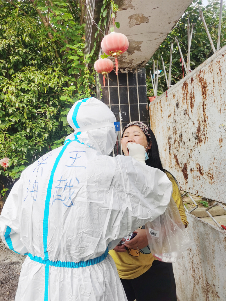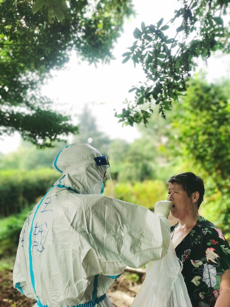 8月4日夜晚,当该院接到县卫健委驰援扬州的命令后,在家负责医务工作的副院长单杉林马上同其他领导会商后连夜开展紧急动员,很快从志愿者中选出胡晓雨、沈亚、陆雅翠、陈昊月、潘金玉共5位年轻护士组成了支援扬州抗疫小组,经过简单的献花送行仪式,第二天上午9点就同全县抽调的其他医护人员一道向扬州进发。下午4点多,她们五姐妹就被指定到莲花社区开始对当地居民进行核酸采集工作,一直忙到夜里近10点,她们共采集核酸标本5396份。尤其是骨科护士胡晓雨家里有个仅3岁的孩子,平时一天也离不开母亲的照料。为支援扬州抗疫,她毅然决定将孩子送至家住响水的母亲那里,自己义无反顾地率先报名让院里挑选。8月7日,经过持续3天在烈日下超负荷工作,沈亚、陆雅翠等4名护士出现轻微中暑现象,扬州中医院的同伴马上为她们送来藿香正气水、风油精涂用后,她们又继续投入了现场核酸采集工作,分秒必争地为当地居民抗击疫情多作贡献。