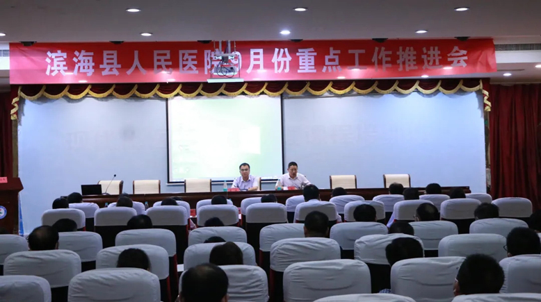 近日,县人民医院召开重点工作推进会,在全院各部门和职工之间比作风、晒业务、促发展、稳提升。该院党委书记吴限,党委副书记、院长戴斌出席,副院长杨华主持。院领导班子成员、中层干部、全体党员计148人参加会议。