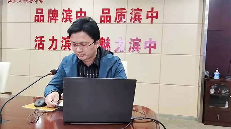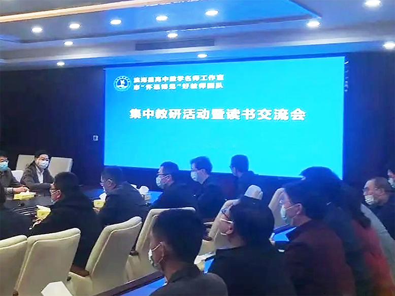 教研处李志国主任主持了本次活动,市“怀远博见”好教师团队和滨海县高中数学名师工作室所有成员在会上积极交流。李志国回顾了团队上学期末布置的阅读《教师花传书》一书的读书任务和交流要求。