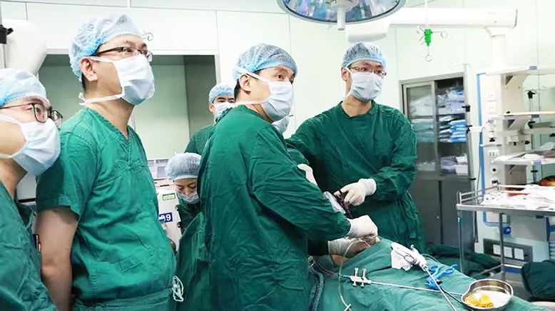 某患者因吞咽困难,进食后有胸骨后哽噎感入院治疗,经胃镜检查被确诊为食管癌。为了能让患者得到根治,尽可能减少手术创伤,该院胸外科戴佳鸿主任医师组织肿瘤科、胸外科、麻醉科多学科会诊讨论。在患者知情同意及充分的术前准备下,胸外科团队为其行胸腹腔镜联合下食管癌根治术。