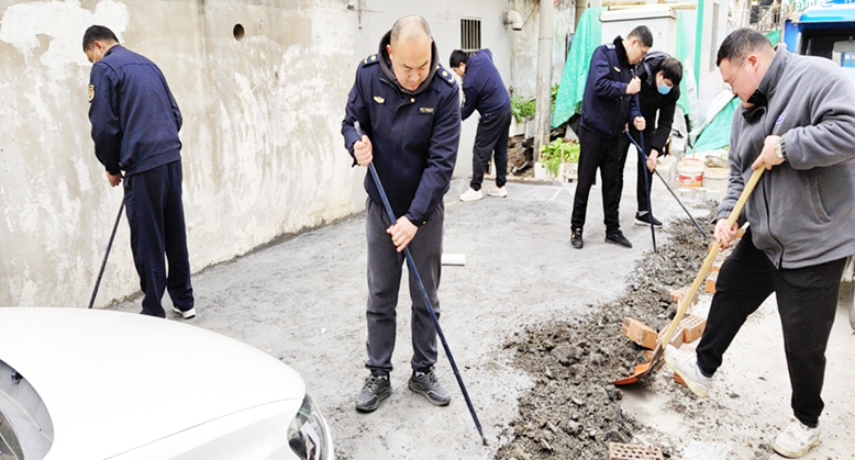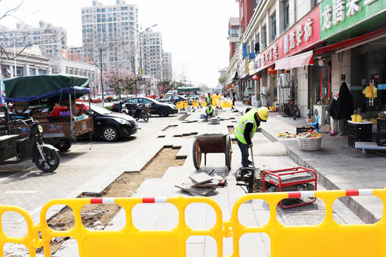 养护所维修工对永宁路(永康路—师苑路段)人行道进行集中整修。