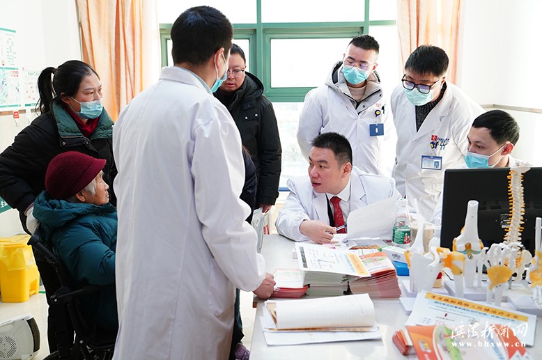 一大早,前来咨询的患者络绎不绝,黄晨悉心听取、耐心解答患者对于骨质疏松症方面的疑问,并一一给予骨质疏松症防治、运动锻炼、用药指导等相关的建议。随后他又到骨科病区进行指导,与责任医生讨论病例,对相关诊疗要点、重点、难点方面进行现场带教,提高医护人员的业务水平。