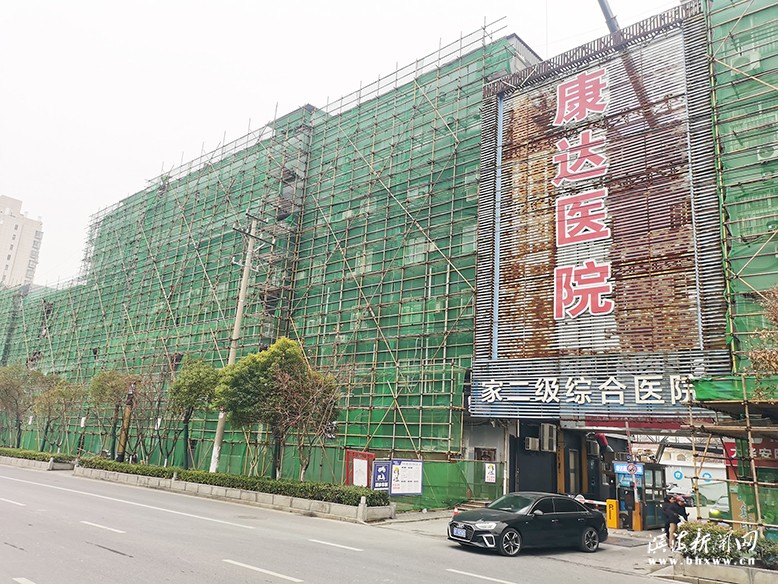 十、改造医院外墙,提升视觉形象:医院投入120余万元,对医院门诊、病房楼外墙真石漆改造及亮化工程,清理陈旧罗马柱造型、牌匾,处置墙体渗水、漏水,梳理规整各种线路及空调落水管。