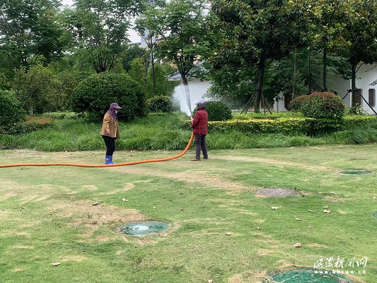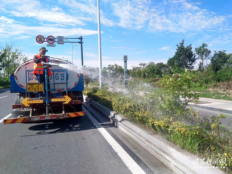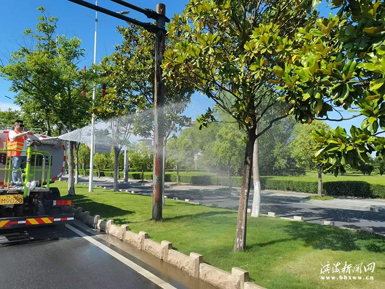 精细管护显成效。一是强化绿化巡查,根据天气预报、各地段绿化长势和土壤湿度等状况,及时制定和调整浇水计划,实现精准浇灌;二是采用车辆机械喷灌、人工引管浇灌等方式,做到浇水全覆盖,确保浇水效果;三是增加重点地段、旱情严重区域的浇水频次,确保浇足、浇透、浇匀、浇实;四是及时进行除草、松土,避免土壤板结,增强土壤蓄水保湿能力,提高浇灌效果。