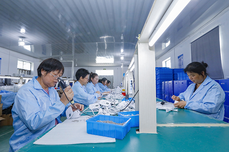 今年56岁的王春霞是官庄村村民,从乡村卫生室退休下来后赋闲在家。“退休下来没事干,非常不适应。今年初,在村劳务公司的推荐下到成卓健康科技公司上班,从事后道工作。现在不光打发了时间,一个月还能挣到4000多元工资,真的太开心了!”王海霞笑着告诉记者。