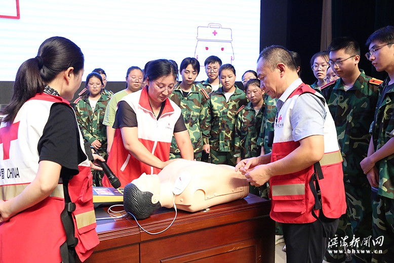 为牢固树立“人民至上、生命至上”理念,8月21日下午2时30分,学校邀请县红十字会的领导、专家对2024级新高一学生们进行了应急救护知识普及与培训。这次活动大力提升了学生应对突发事件紧急救援的能力,也有利于学生在日常生活中更好地关爱自己、关爱他人。